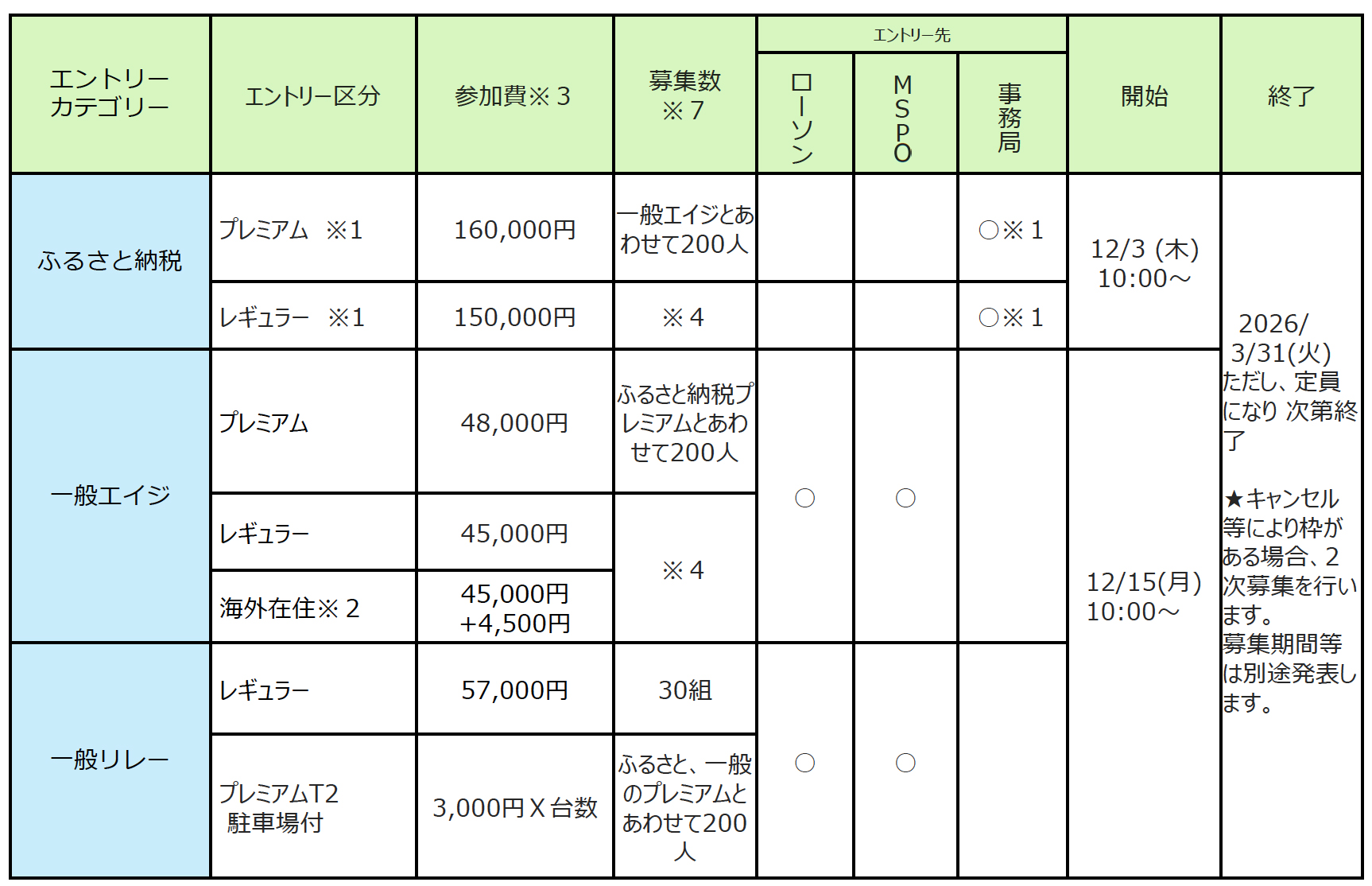 ※4:エントリー区分合計で、1000人・組を定員とします。一定期間で枠を開放する場合があります。